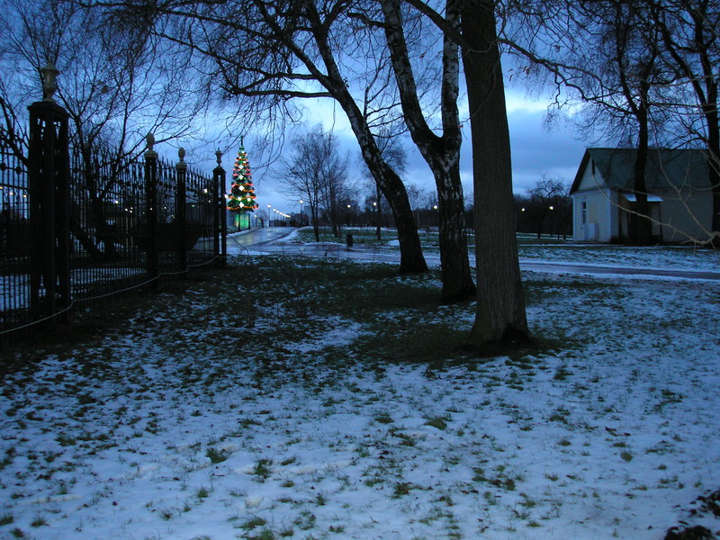 Каширская дорога близ пруда.Справа ряд старых деревьев.Здесь находилась"Черная грязь".
