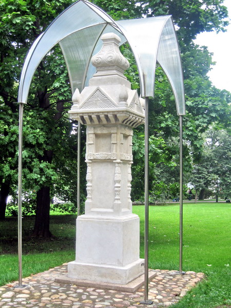 Сотрудники музея Коломенское по неким историко-архивным изысканиям и прежде всего из-за отсутствия подобных сохранившихся сооружений(хотя подобный памятник был и в деревне Орехово)решили что это памятник Александру II(почему не князю Пожарскому?).Подобный вывод напоминает некий госзаказ исходящий от гениального патриота-реконструктора.