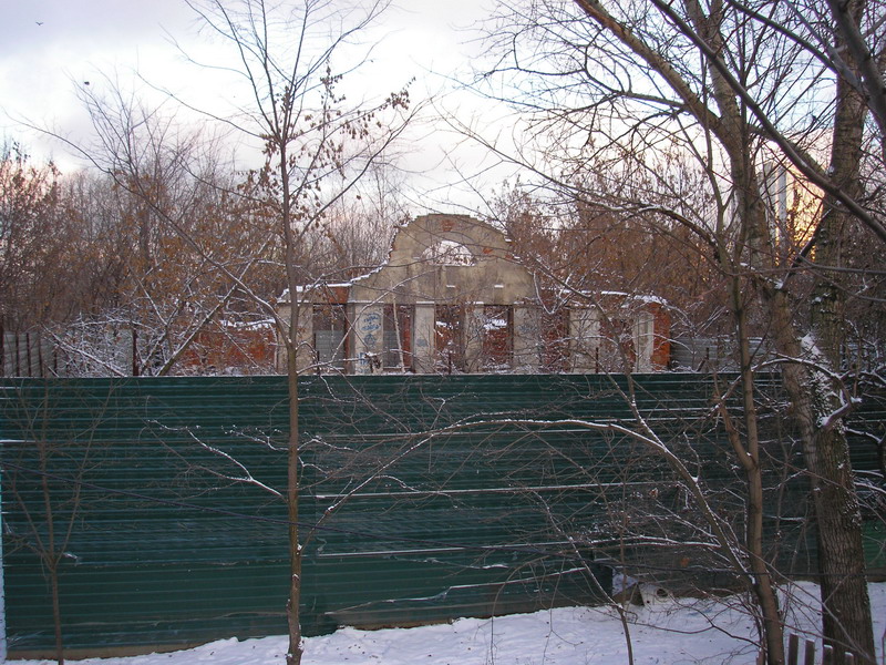 Волостная школа,после революции -"Красная школа",во время войны госпиталь,позже гостиница.Состояла из двух корпусов.Один корпус сломан в 70х.В начале 90х на здании даже была новая крыша.Потом как и везде у нас-все разворовали.Пик разграбления пришелся на конец 90х.До обнесения памятника глухим забором,оно таило на глазах.В планы правительства москвы его реставрация(или на худой конец реконструкция не входит).Его ждет судьба "дома Ольгиных"?